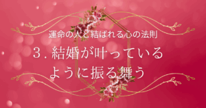 今回は、結婚を望んでいらっしゃるあなたの運勢が飛躍し、運命の人と結ばれ、あなたが望む幸せを享受できる心の法則をお伝えしていきたい。