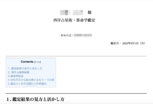 1点目は、占断結果をPDFにてお渡しする形式。